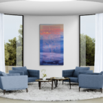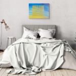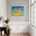 In When The Sun Saw The Sky, Annieo Klaas presents a series of oil paintings inspired by sunlight filtering through window blinds, casting golden rays across her studio. As these rays fall onto her painted skies, a subtle visual loop emerges — light illuminating the sky, while the sky seems to look back at itself.