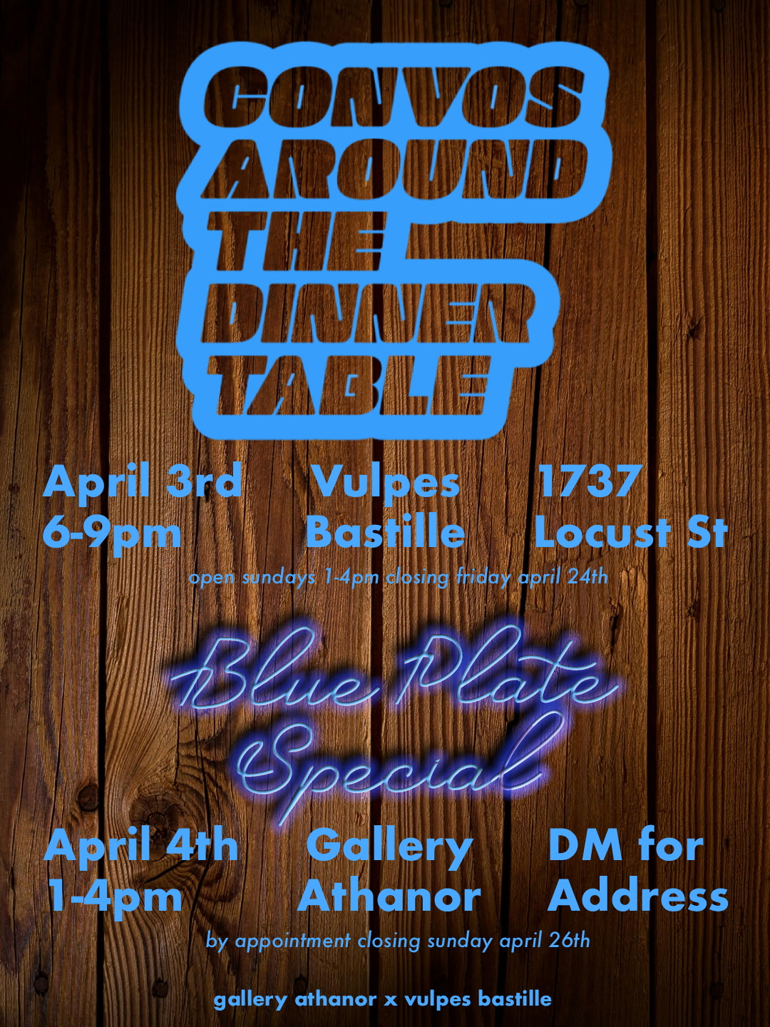 Convos Around the Dinner Table is Gallery Athanor and Vulpes Bastille’s second annual undergraduate exhibition featuring 80 students from 7 regional universities.