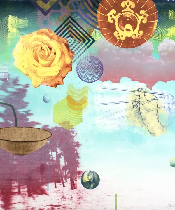 Heinrich Toh’s monoprints explores the complexities of travel, displacement, and assimilation. Where his immediate environment, represented in vast ethereal landscapes, investigates ideas of longing, past and present memories, personal history, and layered cultural identities. While investigating the definition of home and evolving mindscapes. The process of his work combines collagraphs made from cardboard plates, painterly monotype backgrounds, and the transfer of imagery with paper-lithography. They are printed with multiple runs through an etching press that results in layers of color, pattern, and imagery.