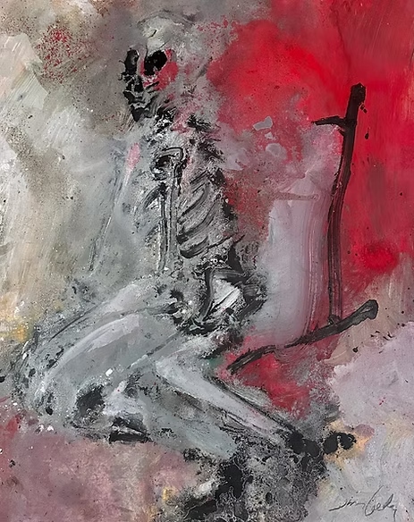 In his skull imagery, Jim Leedy bears witness to the human cost of war and genocide. Referencing the Holocaust and twentieth-century conflicts worldwide, these paintings transform skeletal forms into enduring symbols of collective memory, loss, and moral reckoning.