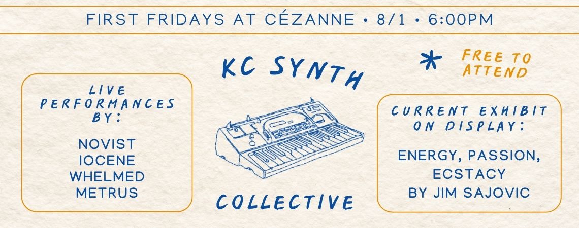 Cézanne Event Space & Art Gallery invites you to a night of bold expression and creative curiosity during First Fridays in the Crossroads. We’re teaming up with KC Synth Collective for an immersive evening featuring live synth performances and an interactive Q&A with the artists.