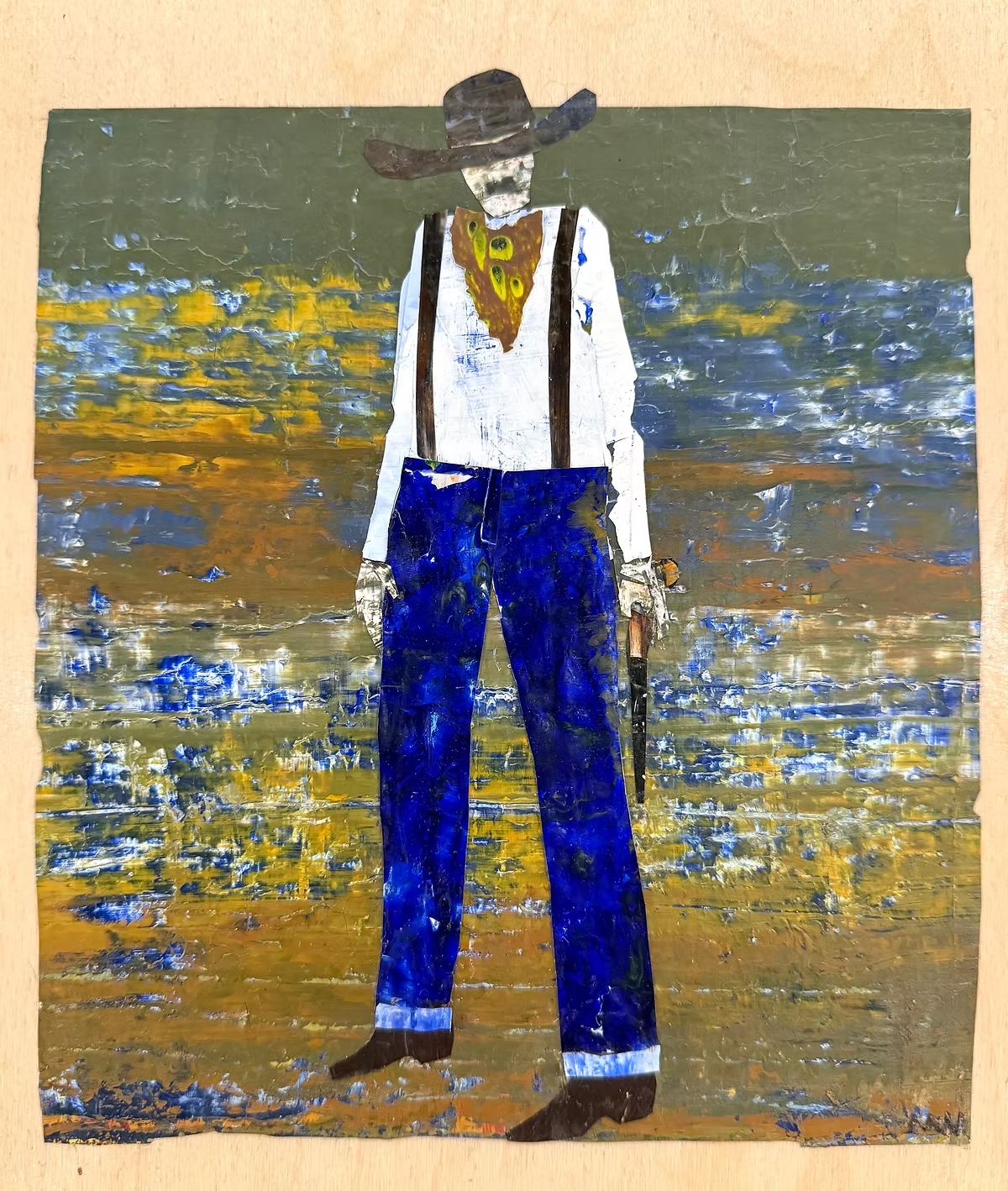 The work involves a variety of materials and processes. The materials used include paper, paint, inks, marker, pencil, glue, dried paint chips, and paint skins. My work involves aspects of painting, drawing, collage, and assemblage.