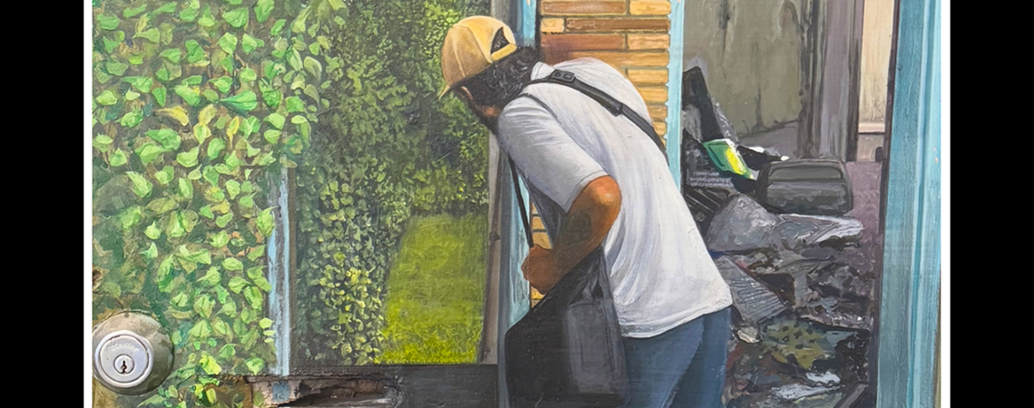Each painting stands alone but shares a common thread: witnessing and preserving a moment. Some are painted on found materials, rich with their own histories; others on canvas, when the image itself takes priority.