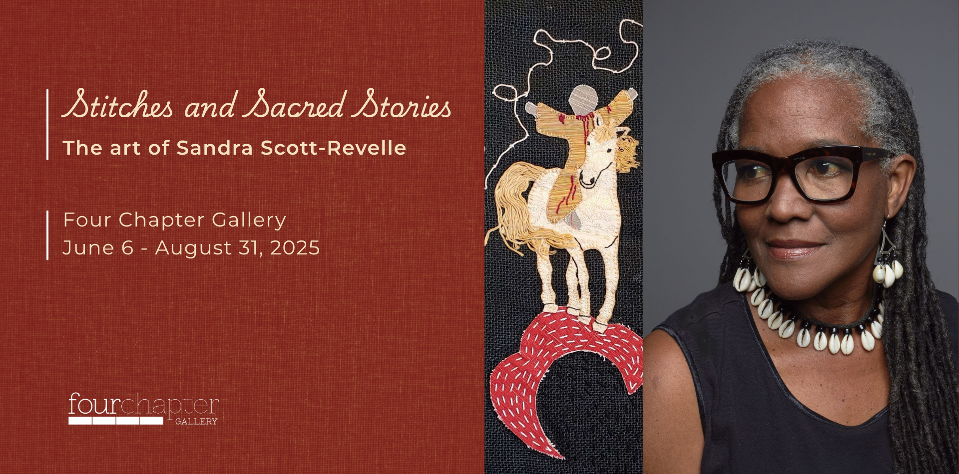 Artist Sandra Scott-Revelle weaves together storytelling and appliqué to feature individuals she refers to as “the lesser-known lights in the vast heavens of Black history.” Sandra researches the narratives of formerly enslaved people and prayerfully shapes their experiences into inspiring short stories, poems, and fabric art that “provoke thought and prick the heart.”