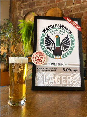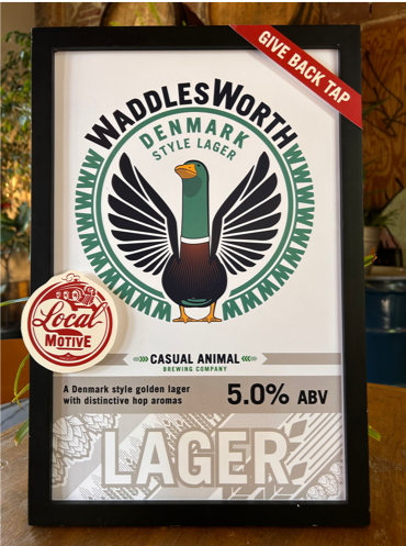 This month, every pint of the Local Motive Denmark-style Lager, “Waddlesworth”, benefits Charlotte Street Foundation.