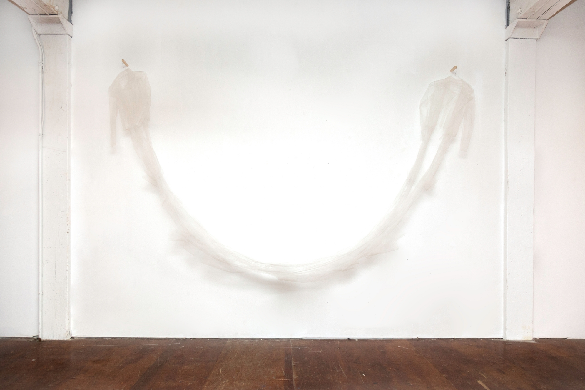 Hadley Clark walks an ever-expanding circuit connecting her life and her studio practice; from sewing table to home closet to backyard compost to garden beds to kitchen stovetop, and changing with the seasons, and back again, and a little wider next time. Functionally, this belief system results in work that is made slowly and humbly with plant-dyed, found, and donated textiles, often incorporating discarded cuts from the floor of Clark’s studio, and leans in the direction of the emotional, psychological, and memorializing qualities of a garment in the life of its wearer. This exhibition captures the artist as she eschews garments’ utility on the body in favor of the personal and spiritual signifiers they carry on the wall.