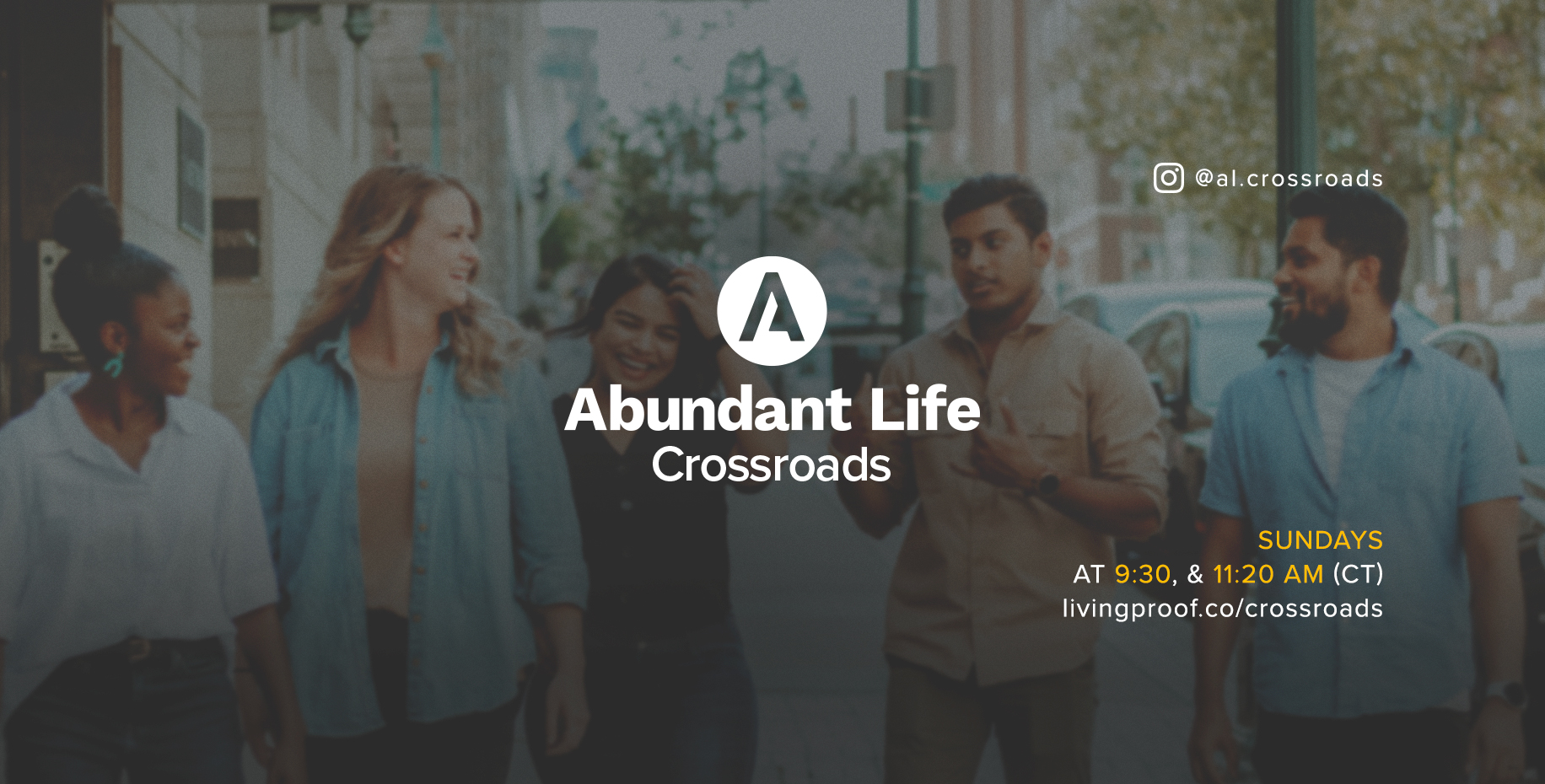 We know what it’s like to feel disconnected, to not have a community and family of Christians to do life with.If you’re like most, you’ve searched for a community with which you could grow, learn, serve, and worship. At #AbundantLife, we are on a mission to see lives — including yours — changed by Jesus. We’ve seen over and over again that we grow, learn, and live changed lives through biblical community.We want to equip, encourage, and empower you by coming alongside you so that we — together — can be living proof of a loving God to a watching world. Learn more at livingproof.co/about-us/who-we-are.